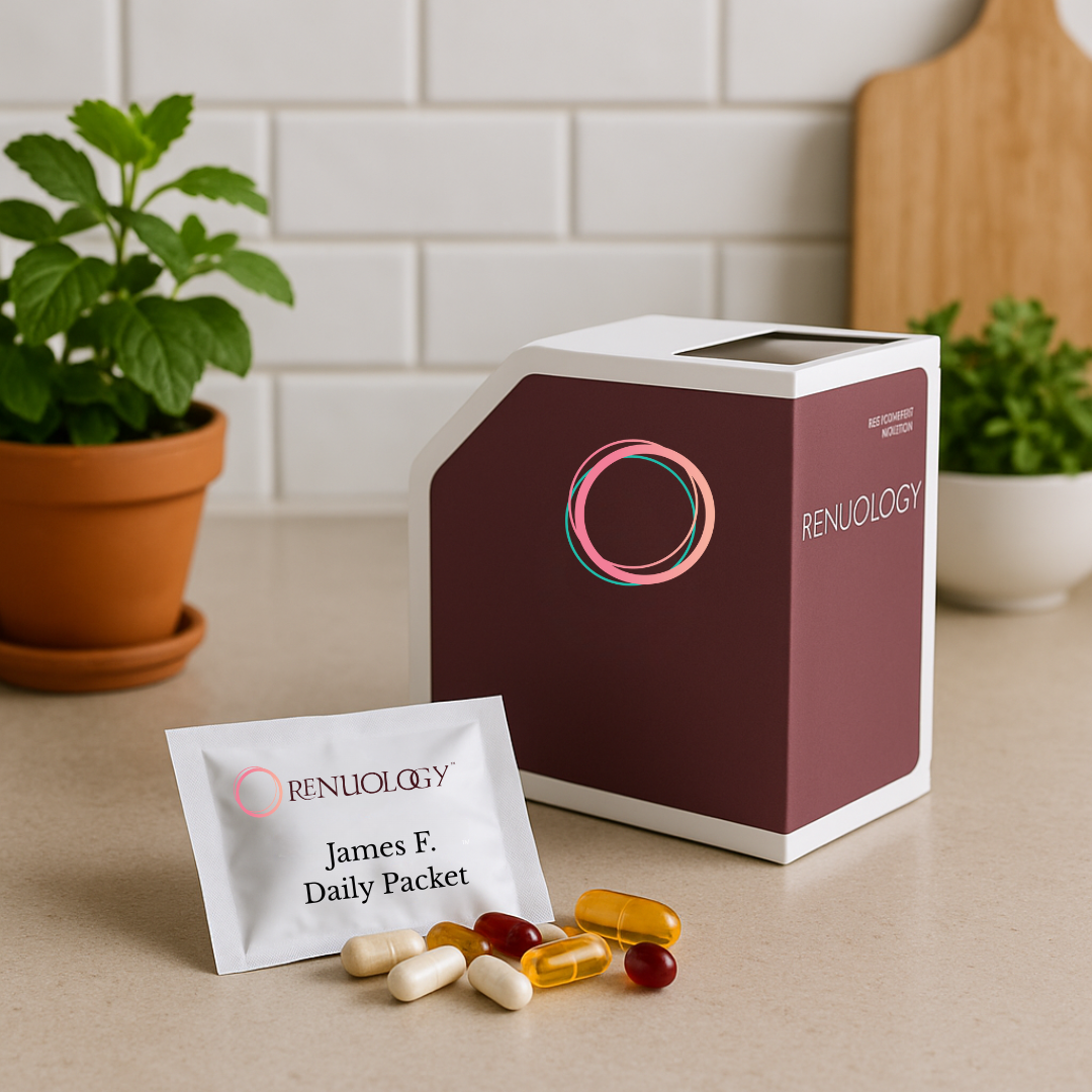With Renuology’s personalized supplement packets, everything your body needs each day is delivered in one simple, convenient sachet—customized just for you.