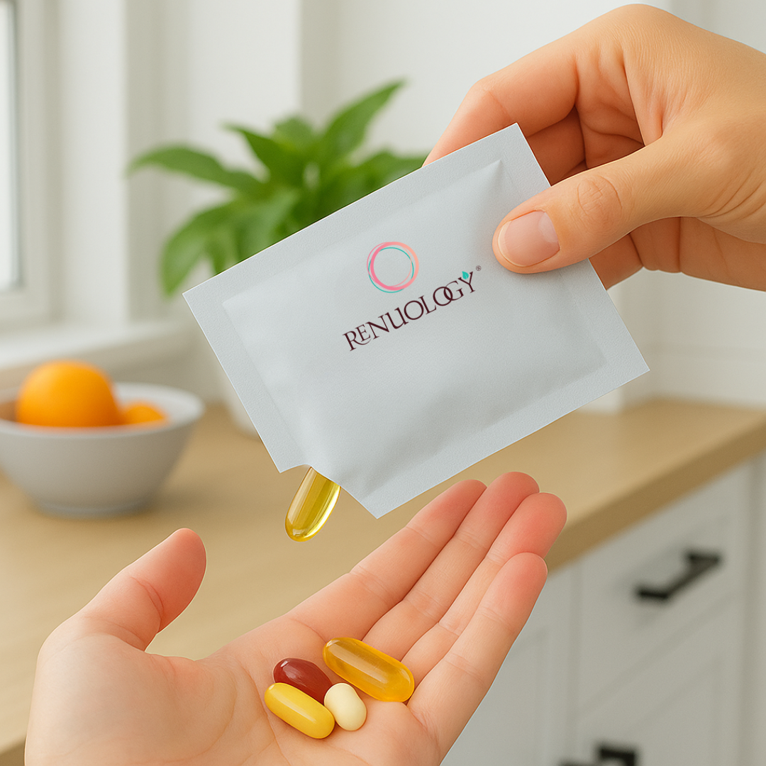 Say goodbye to juggling countless supplement bottles—our personalized daily packs are designed for simplicity and convenience. Whether you're heading to the gym, office, or jet-setting across the globe, each pre-portioned sachet fits seamlessly into your routine, making it easier than ever to stay consistent with your health goals, no matter where life takes you.