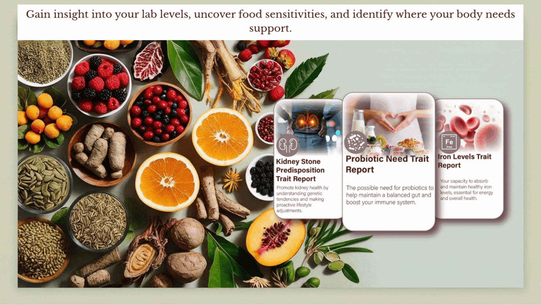 Receive a science-backed wellness report tailored to you, filled with easy-to-follow recommendations for optimizing your health.